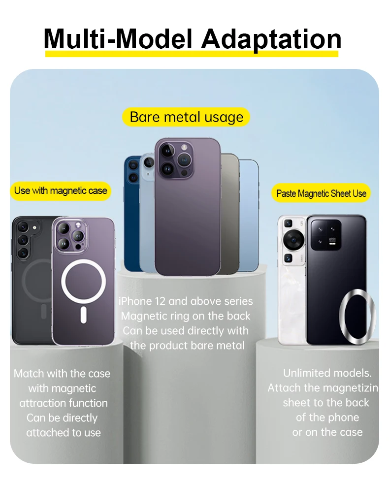 For iPhone 12 and above series Magnetic ring on the back Can be used directly with the product bare metal.