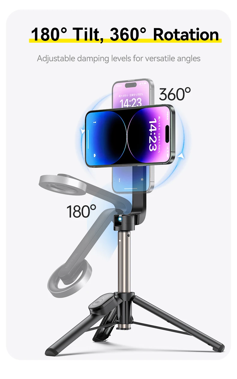 TELESIN Magnetic Phone Tripod Stand – Selfie Stick with Remote for iPhone 12/13/14 Series