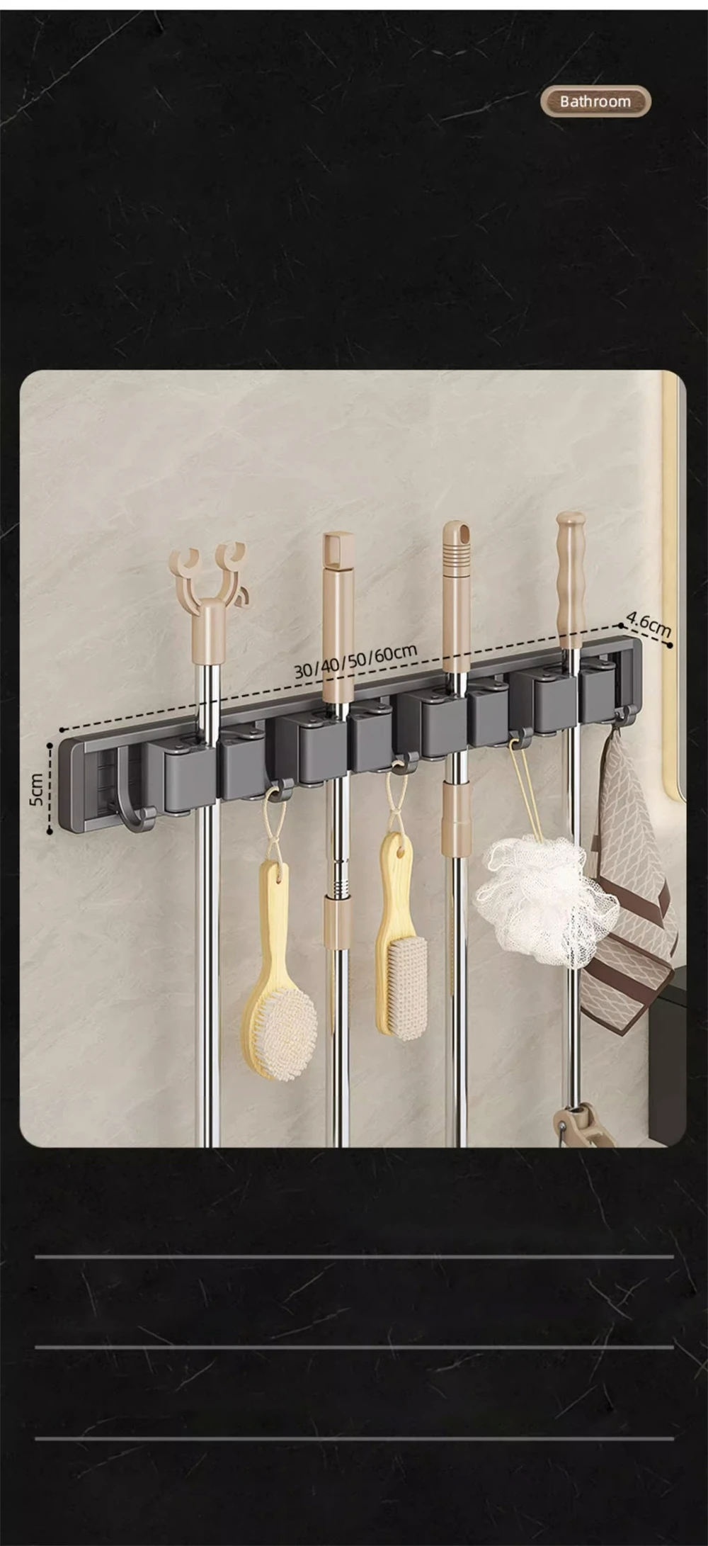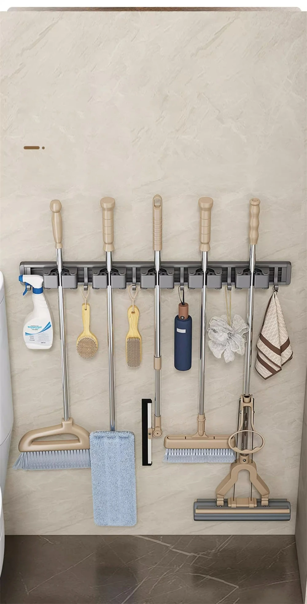 Wall Mounted Mop and Broom Holder – Kitchen & Bathroom Storage Rack
